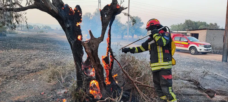 Peste 20 de militari români cu șapte mijloace tehnice de intervenție intervin, miercuri, pentru stingerea unui incendiu de vegetație în zona Megara, Grecia.