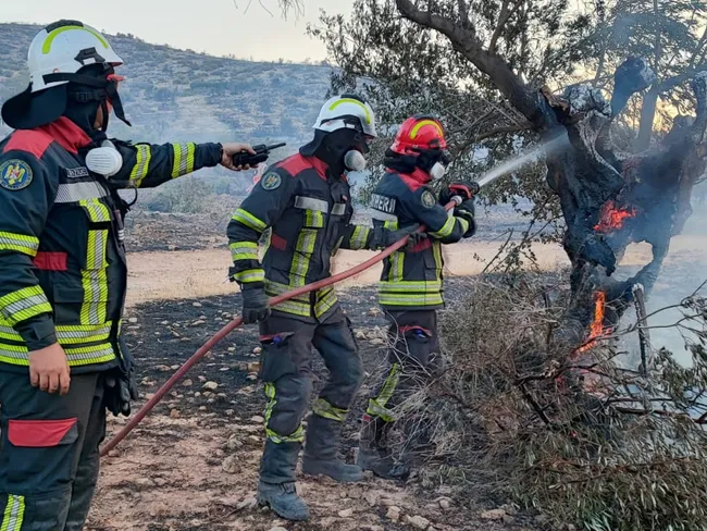 Pompierii români intervin la un incediu din Megara, Grecia. IGSu anunță la au fost trimise 7 mijloace tehnice la fața locului.