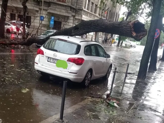 O furtună pornită din senin, fără să fie prevăzută de meteorologi, a dat peste cap Bucureștiul. Vântul puternic și ploaia în rafale s-au pornit dintr-o dată.