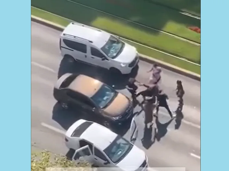 Un clip video filmat în traficul din Capitală arată două grupuri care s-au luat la bătaie în mijlocul străzii folosind, printre altele, și crose de golf.