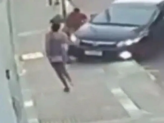 VIDEO Hoț care a furat telefonul unei femei, lovit cu mașina de iubitul ei și bătut de trecători