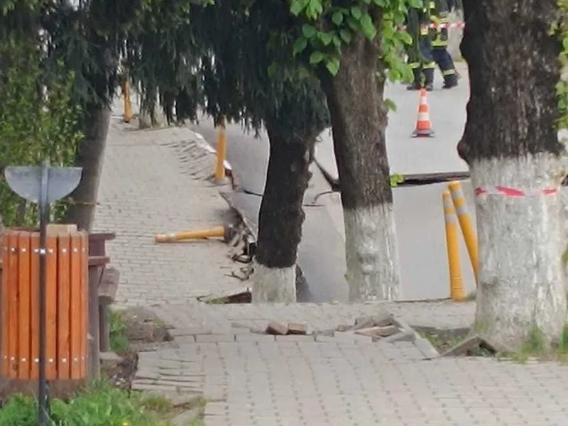 O strădă din centrul Slănic Prahova s-a surpat. Un bloc e în pericol