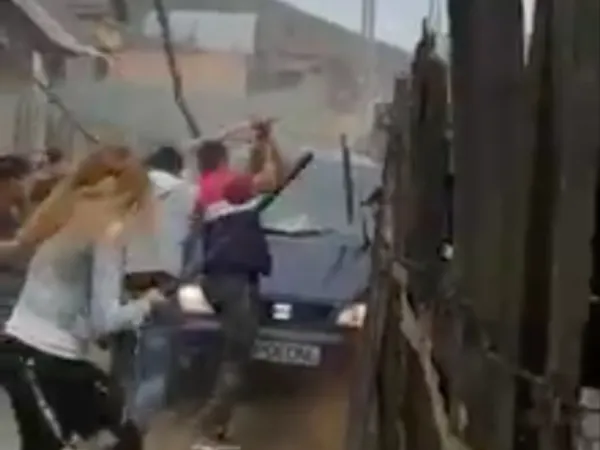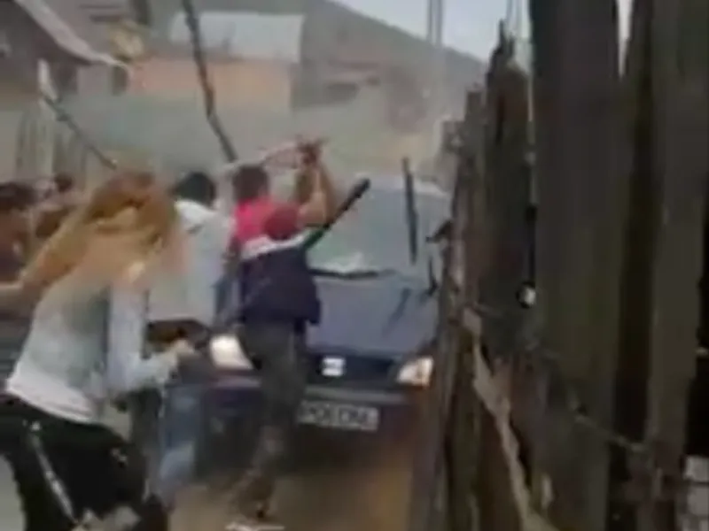VIDEO Imaginile șocante ale bătăii cu pari și lopeți din Săcele. O vreme, polițiștii n-au intervenit