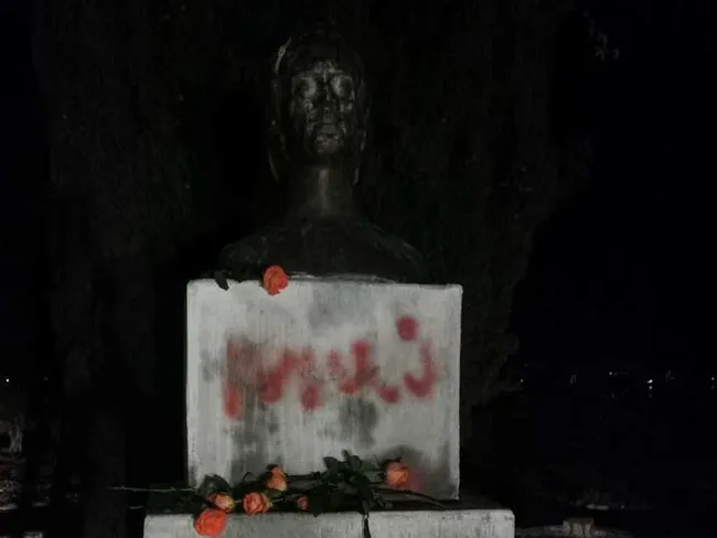 VIDEO În amintirea poetului Mihai Eminescu, statuia sa din Orșova a fost „pictată” cu texte obscene