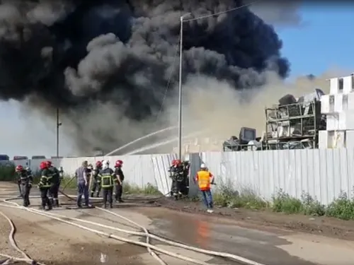 VIDEO: Incendiu la cel mai mare depozit de materiale reciclabile din Buzău