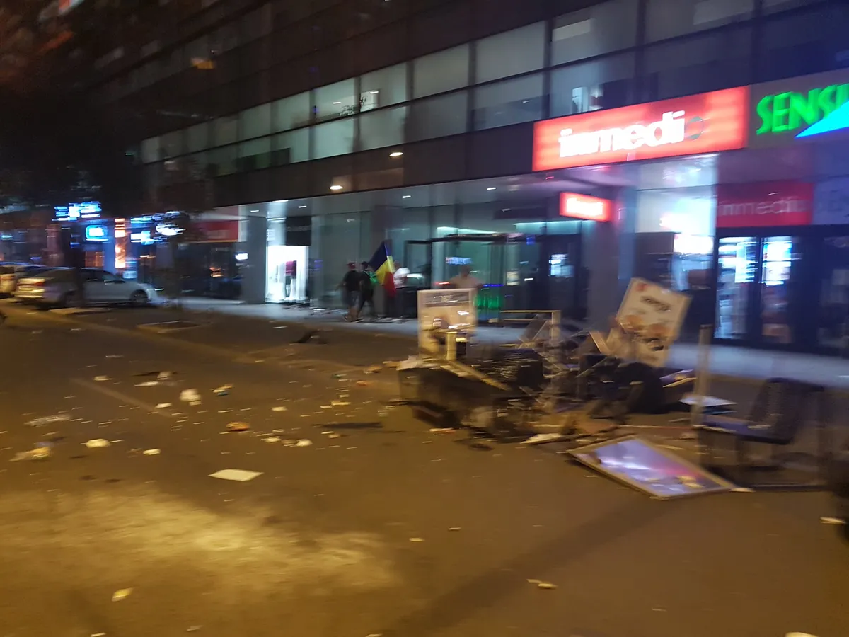 Mai multe persoane necunoscute au adunat obiecte în mijlocul bulevardului și le-au dat foc. La incendiu au sosit prima dată jandarmii, care au încercat să îi prindă pe ultrașii despre care se presupune că au dat foc.