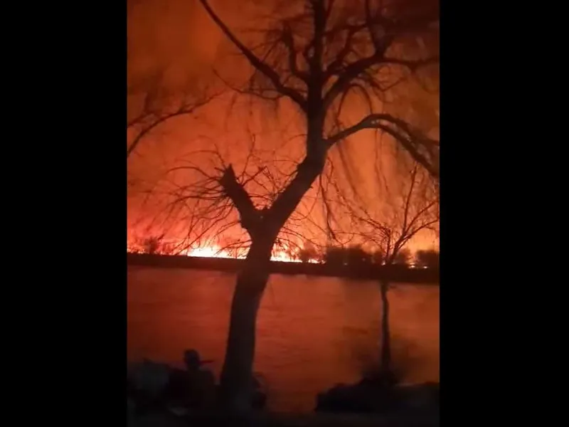 VIDEO Incendiu puternic, în Delta Dunării, pe Brațul Sulina. De ce nu pot interveni pompierii