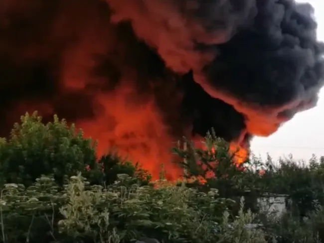 VIDEO Incendiu puternic la un depozit din Bihor