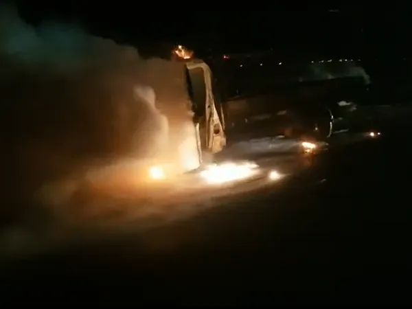 VIDEO incredibil: Cum a scăpat cu viață șoferul unei camionete care a ars de tot pe autostrada A1