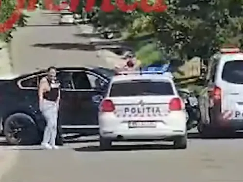 VIDEO Interlopul Romeo Blegu a intrat cu mașina în duba cu mascați. Nu avea nici permis