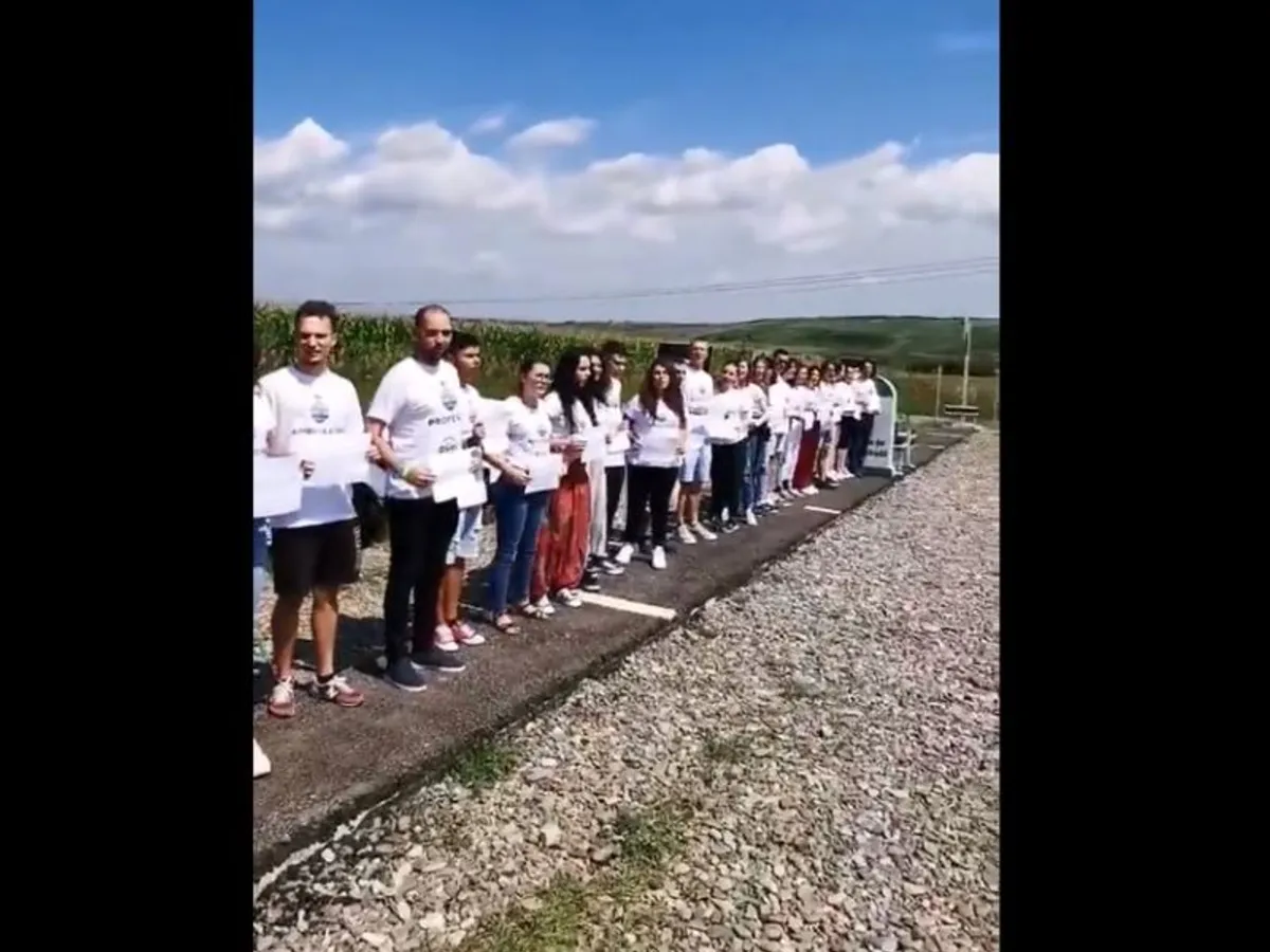 VIDEO Judecătorul Danileț a protestat alături de adolescenți pe metrul de autostradă din Suceava