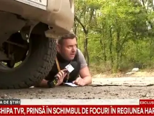 „Echipa TVR a fost prinsă într-un schimb de focuri în regiunea Harkov, iar reporterul nostru Alex Costache a fost filmat relatând de sub caroseria unei mașini!