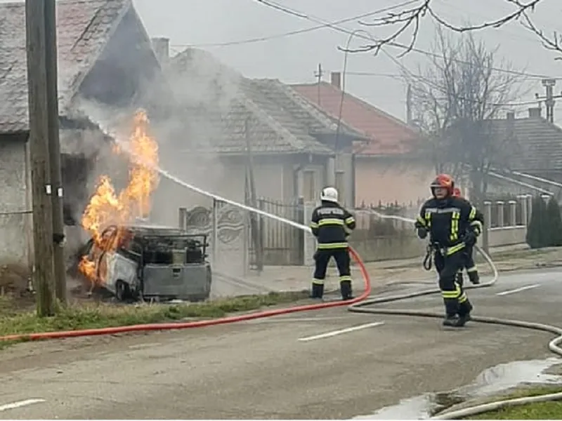 Când au venit pompierii mașina ardea ca o torță. 14 din cele 20 de butelii cu gaz butan care se aflau în autoutilitară au explodat. Incendiul a cuprins și casa în care s-a oprit mașina.