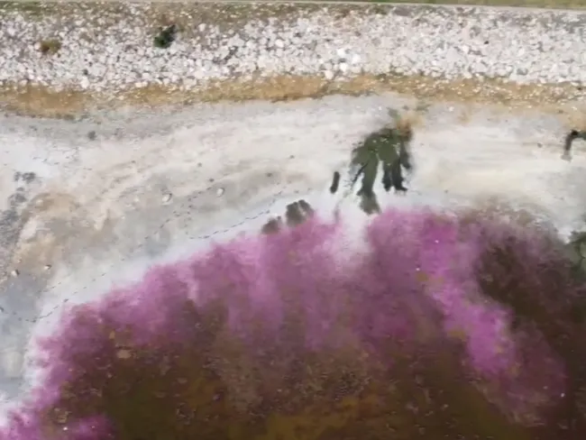 Specialiștii spun că bacteriile sulfuroase se aștern ca un praf roz pe părțile expuse la lumină ale algei verzi. Cresc în biomasă și formează astfel de îngrămădiri, iar apa devine roz-violacee.