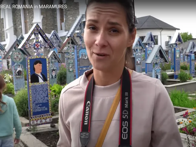 „Suntem în Breb, Maramureș, iar această localitate este cel mai autentic sat din România. Este locul unde timpul s-a oprit. Zici că te-ai întors înapoi în timp o mie de ani. Pentru că aici viața e exact cum era pe timpuri și suntem recunoscători că încă păstrează cultura locului... Oamenii de aici se gospodăresc singuri în totalitate. Tot ceea ce mănâncă este produs în gospodăriile lor. Este uimitor. Fiecare poartă de lemn este sculptată manual. Priviți toate aceste detalii. Fiecare casă are o astfel de poartă de lemn.””, a spus soția.