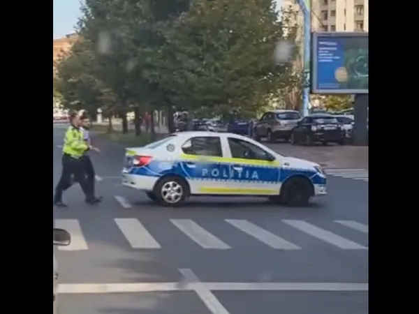 Sindicatul Europol a publicat imagini cu doi poliţişti care împing o autospecială de Poliţie Dacia Logan, în mijlocul unei intersecţii.