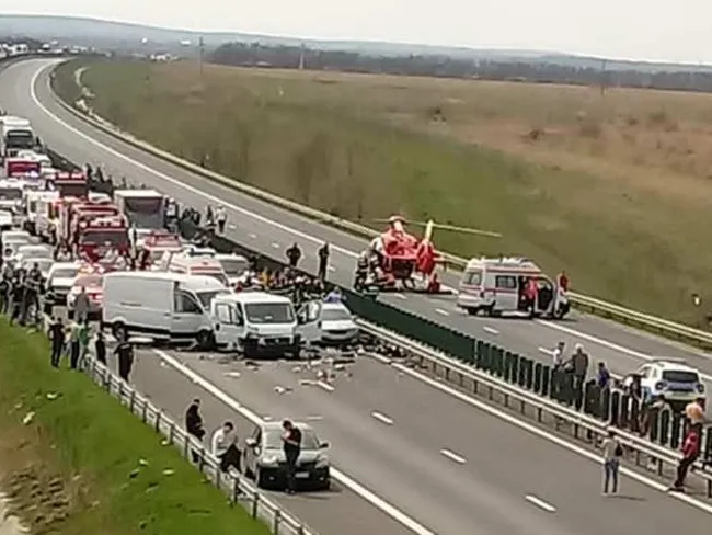 Șase mașini s-au izbit violent, iar, din primele informații, mai multe persoane și-au pierdut viața și alte două sunt resuscitate la fața locului. În total, 22 de oameni au fost implicați în accident.