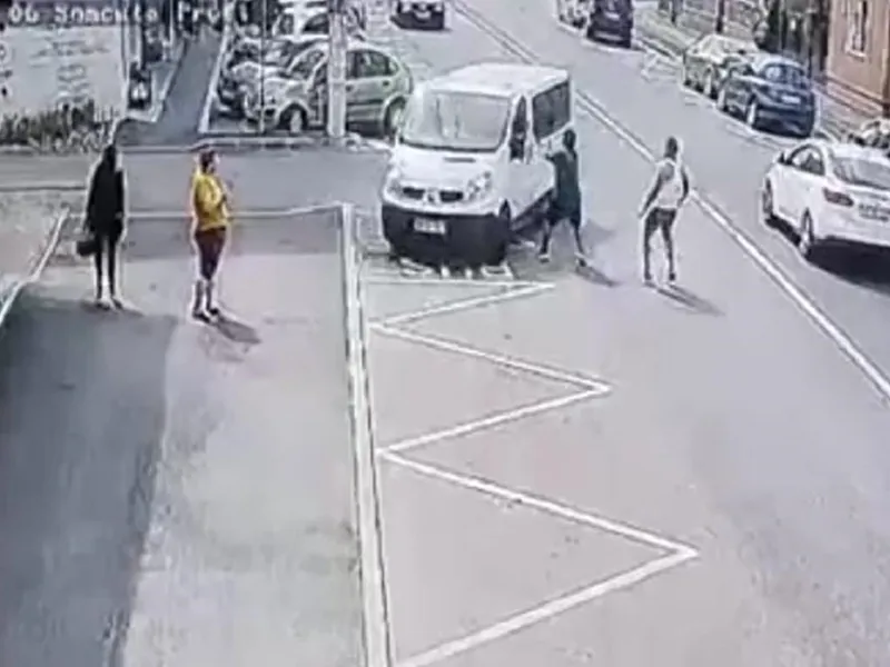 Doi bărbați au atacat cu bâtele, în plină zi, un microbuz al unei firme de trasport persoane. Cei doi erau supărați că microbuzul transporta legal oameni, ceea ce le încurca lor treburile.