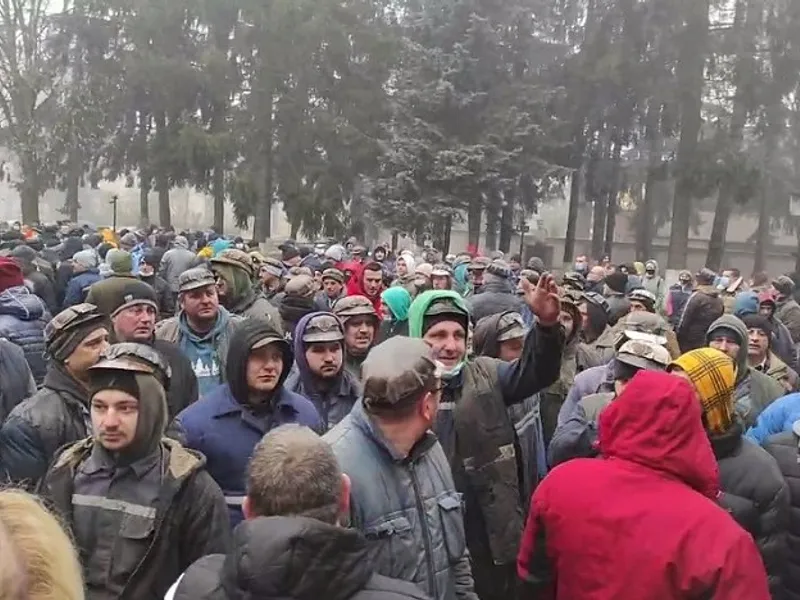 Protestele continuă în Valea Jiului, luni dimineaţă. Sute de mineri s-au adunat în faţa sediului Complexului Energetic Hunedoara pentru a-şi cere drepturile restante. Este vorba despre salarii, tichetele de masă - restante de 10 luni, decontarea transportului - restant de 11 luni şi decontarea încălzirii.