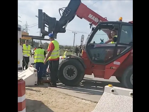VIDEO Minunea de la Drobeta: muncitorii au uitat elevatorul în sensul giratoriu. Vicele CNAIR, vesel