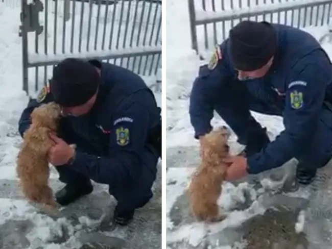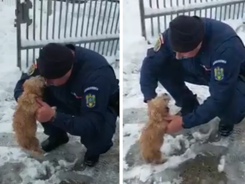 „Am oprit maşina, am văzut că este tot ud, m-am bagat în zăpadă până peste genunchi. L-am luat în brațe, l-am băgat în maşină să se usuce un pic”, a declarat jandarmul, potrivit Știrileprotv.