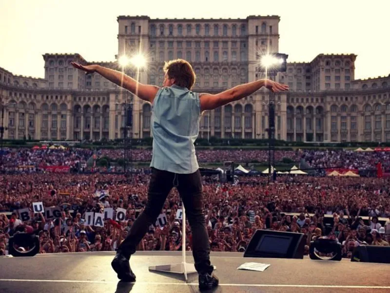 Sute de salariați ai Parlamentului și ai Curții Constituționale au văzut, duminică seară, gratis, concertul Bon Jovi, din curtea Palatului Parlamentului.