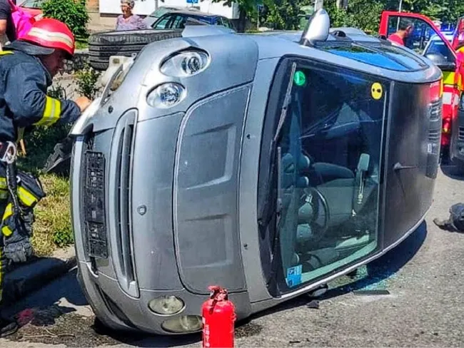 VIDEO Nu se știe cum o începătoare de 71 de ani s-a răsturnat în Pitești. Avea permis de două luni