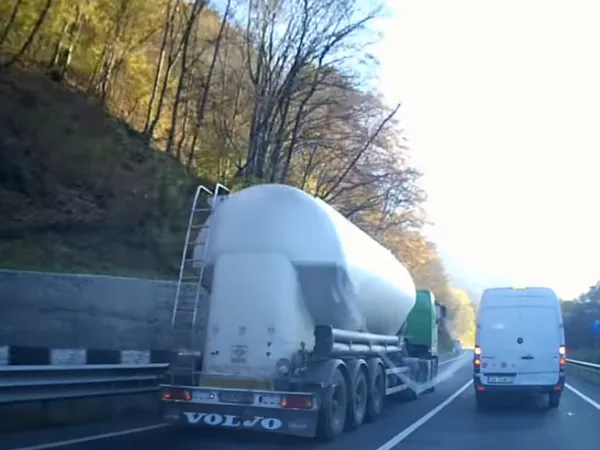 VIDEO O cisternă depășește pe contrasens și pe linie continuă mai multe coloane de mașini