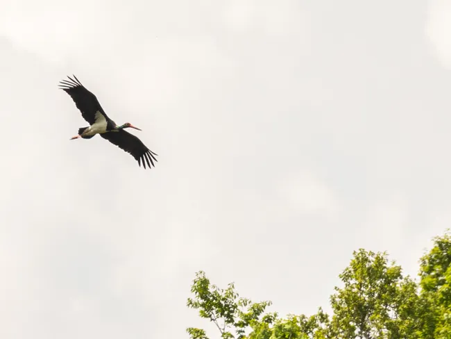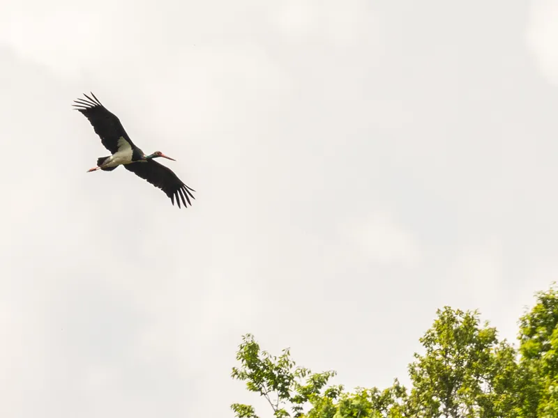 Imagini inedite cu o barza neagră au fost surprinse în parcul natural Retezat. Pasărea este retrasă și evită contactul cu oamenii.
