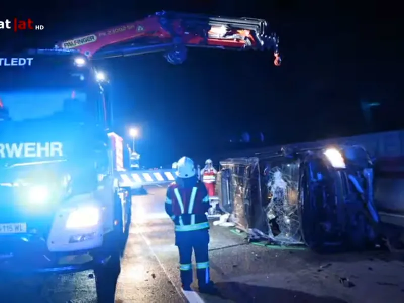 O dubă cu români s-a răsturnat pe o autostradă din Austria, în noaptea de sâmbătă spre duminică, după ce șoferul a adormit la volan. Conducătorul auto și trei pasageri au fost grav răniți, iar alți patru pasageri au suferit răni ușoare.