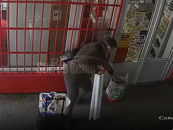 Totul s-a întâmplat la intrarea într-un magazin din cartierul buzoian Micro 3. Întreaga scenă a fost surprinsă de camerele de supraveghere ale magazinului.