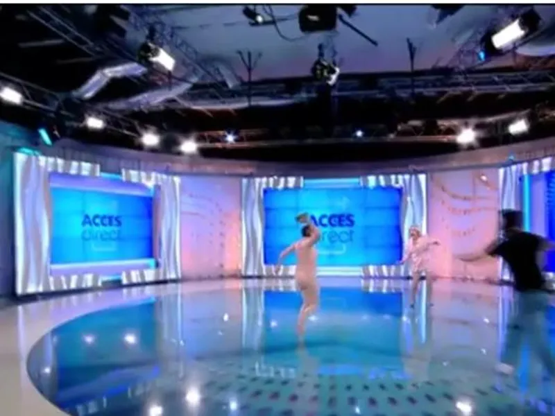 VIDEO O femeie dezbrăcată a intrat în platoul „Acces direct” (Antena 1), a dat atacul cu un bolovan