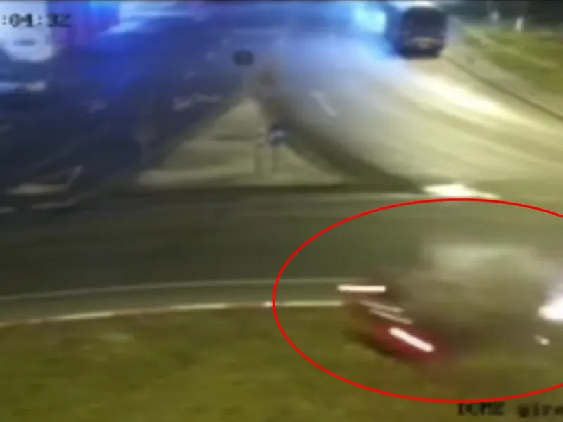 Accidentul a fost surprins și de camerele de supraveghere din zonă. În imagini se poate observa cum mașina condusă de bărbatul de 42 de ani vine în viteză, se izbește de sensul giratoriu şi se rostogolește de câteva ori pe şosea, relatează dobrogea.tv.