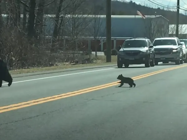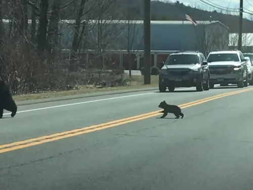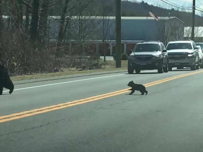 VIDEO O ursoaică își trece puii peste un drum, în Connecticut. Șoferii așteaptă răbdători