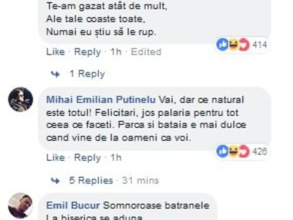 Printre cele mai apreciate comentarii se numără cel al Mădălinei Ștefu, care scrie: „Pe lângă stâlpii fără soț/adesea ai trecut/te-au bătut jandarmii toți/de nu te-am cunoscut.”, după celebra „Pe lângă plopii fără soț”.