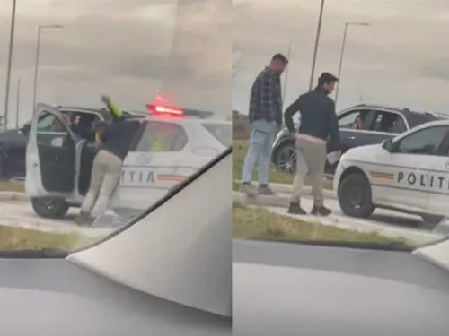 VIDEO Oprit pentru că era agresiv, un șofer și-a recuperat permisul cu forța din mașina poliției