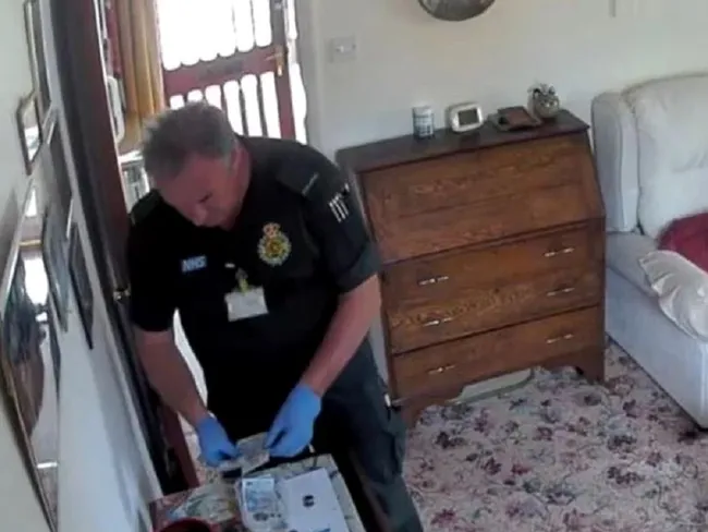 Un paramedic a fost surprins de o cameră de luat vederi în timp ce fura 60 de lire sterline din casa unei femei de 94 de ani, la câteva momente după ce aceasta s-a prăbușit și a murit.