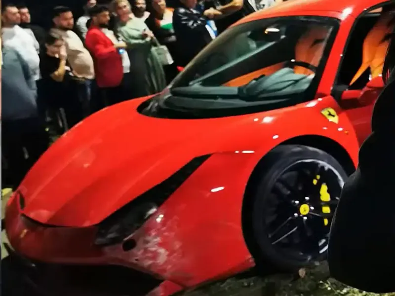 VIDEO Pe Miraj Tzunami l-a luat valul cu Ferrari-ul fratelui său, Tzancă Uraganu. Accident la ANAF