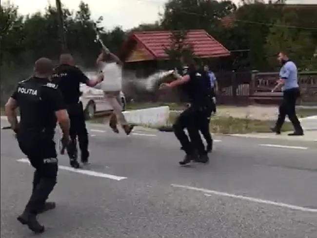 VIDEO Polițiști atacați cu bâta de un bărbat din Gorj. Cum a fost prins până la urmă