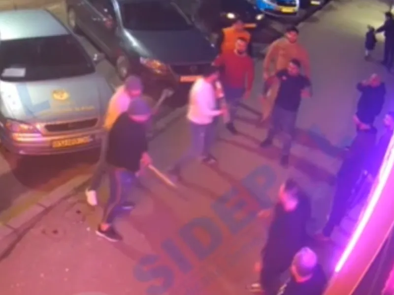 VIDEO „Război pe uliță” cu topoare și bâte în centrul Buhușiului. Un polițist a fost lovit cu bâta