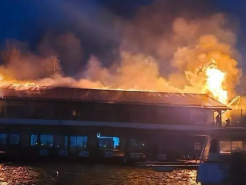 VIDEO Restaurantul de fițe „Taverna racilor” de pe malul lacului Snagov, în flăcări