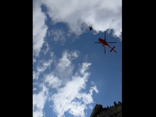 Operațiune de salvare ca-n filme, cu elicopterul, de sub vârful Păpușa Mare. O femeie a căzut într-o râpă