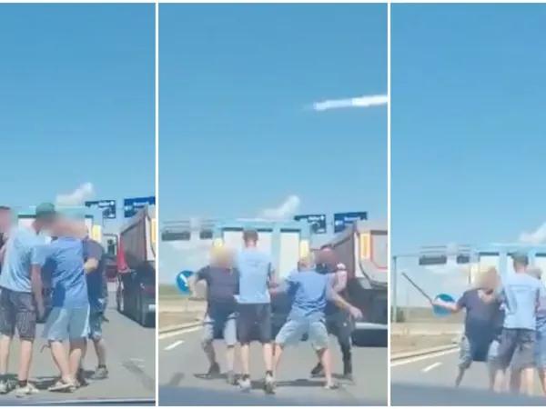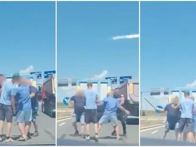 Potrivit imaginilor, șoferul unui camion și cel al unui microbuz s-au luat la bătaie. De față era încă un bărbat, care pare a fi colegul șoferului de camion, și care s-a alăturat și el în scandal. La un moment dat, în altercație este surprinsă și a patra persoană, care părea că vrea să-i despartă pe toți. Unul dintre oameni era „înarmat” și cu un levier.