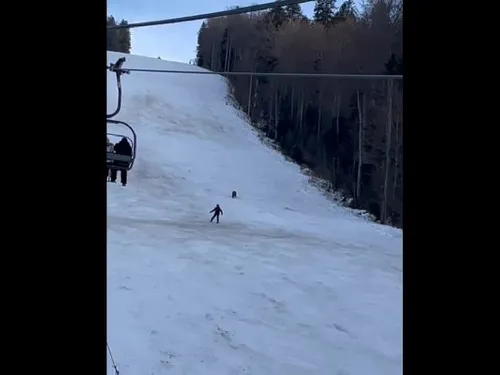 VIDEO Schi extrem la Predeal: Un schior, alergat de urs pe pârtia Clăbucet