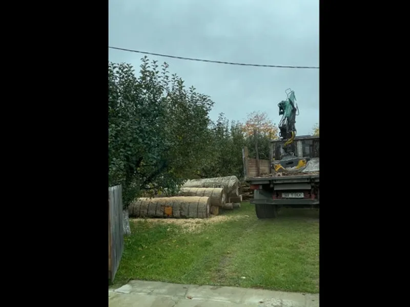 Un camion cu lemn de fag fără acte a fost depistat de activiștii de mediu intrând și descărcând în curtea Postului de Poliție din comuna Arbore, județul Suceava. Imediat, un bărbat s-a apucat să taie lemnul pentru foc.