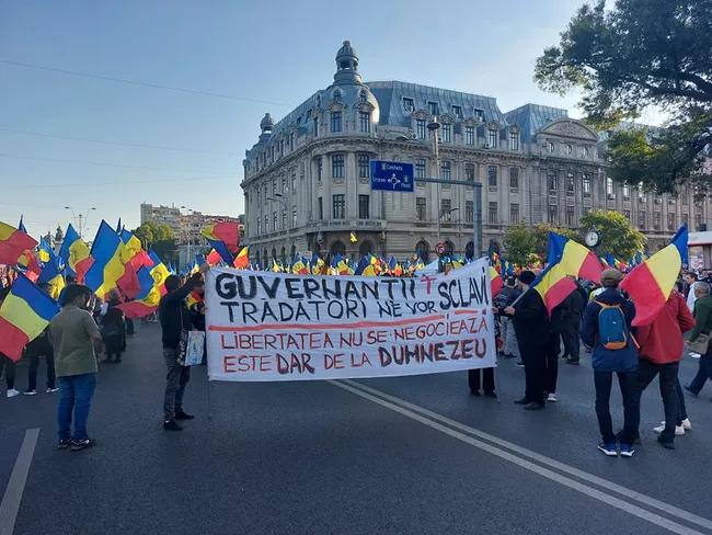 Tot sâmbătă, de la ora 16, câteva sute de persoane s-au strâns în Piaţa Victoriei cu revendicări similare cu cele ale AUR, organizat de Legitima Aparare și Calea Neamului, împreună cu Starea de Libertate, potrivit HotNews.