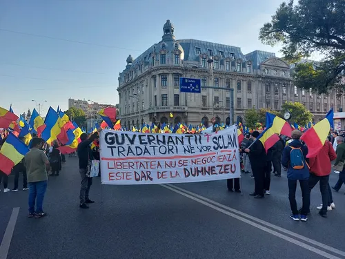 Manifestul antiguvernamental este organizat de AUR împotriva restricțiilor COVID-19 și a certificatelor verzi.