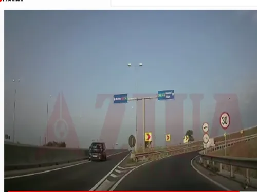 O maşină a fost filmată în timp ce rula pe contrasens, la urcarea pe autostrada A4, dinspre Valu lui Traian, în judeţul Constanţa.