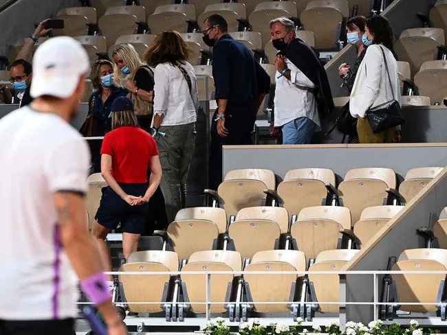 Jocul a fost întrerupt, iar publicul a fost evacuat de pe arena centrală. Se făcuse ora 23.00 când francezii nu mai au voie să participe la niciun fel de eveniment urmare a restricțiilor anti-COVID. Unii dintre spectatori au huiduit decizia. Supervizorul întâlnirii a fost nevoit să coboare în arenă și să trimită jucătorii la vestiare pentru a-i convinge pe ultimii spectatori să plece acasă.