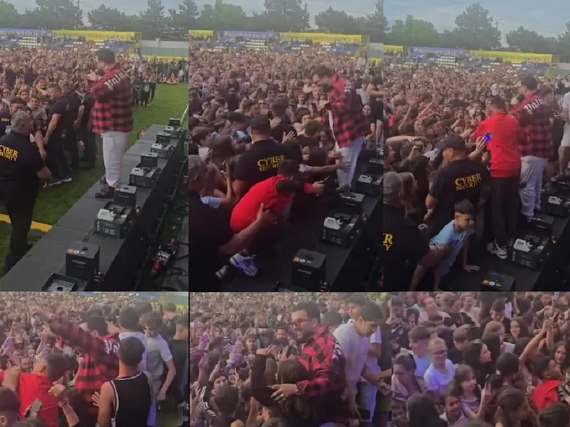 În imaginile postate de cântărețul Andrei Velcu, pe numele de artist Tzancă Uraganu, se văd cum foarte mulți copii se îmbulzesc să-l atincă pe cântăreț. Unii se urcă pe scenă, după ce cântărețul le-a spus agenților de securitate să-i lase să se apropie de el.